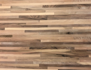 1. Plan de travail en Noyer massif étuvé lamellé collé produit en lames aboutées.